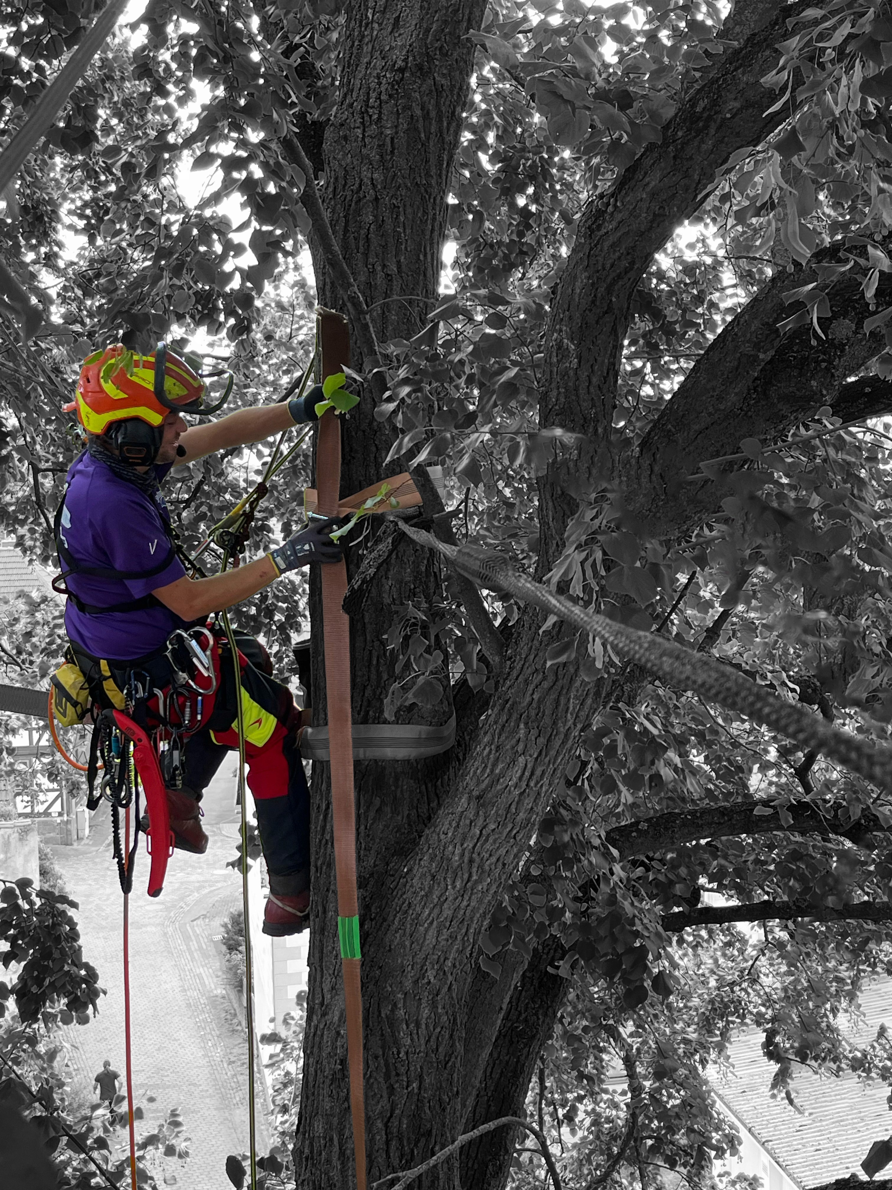 Wenn Kronenteile gefährdet sind, bieten wir eine sichere Alternative zur Fällung. Unsere Seil- und Gurtbandsysteme stabilisieren Bäume zuverlässig.